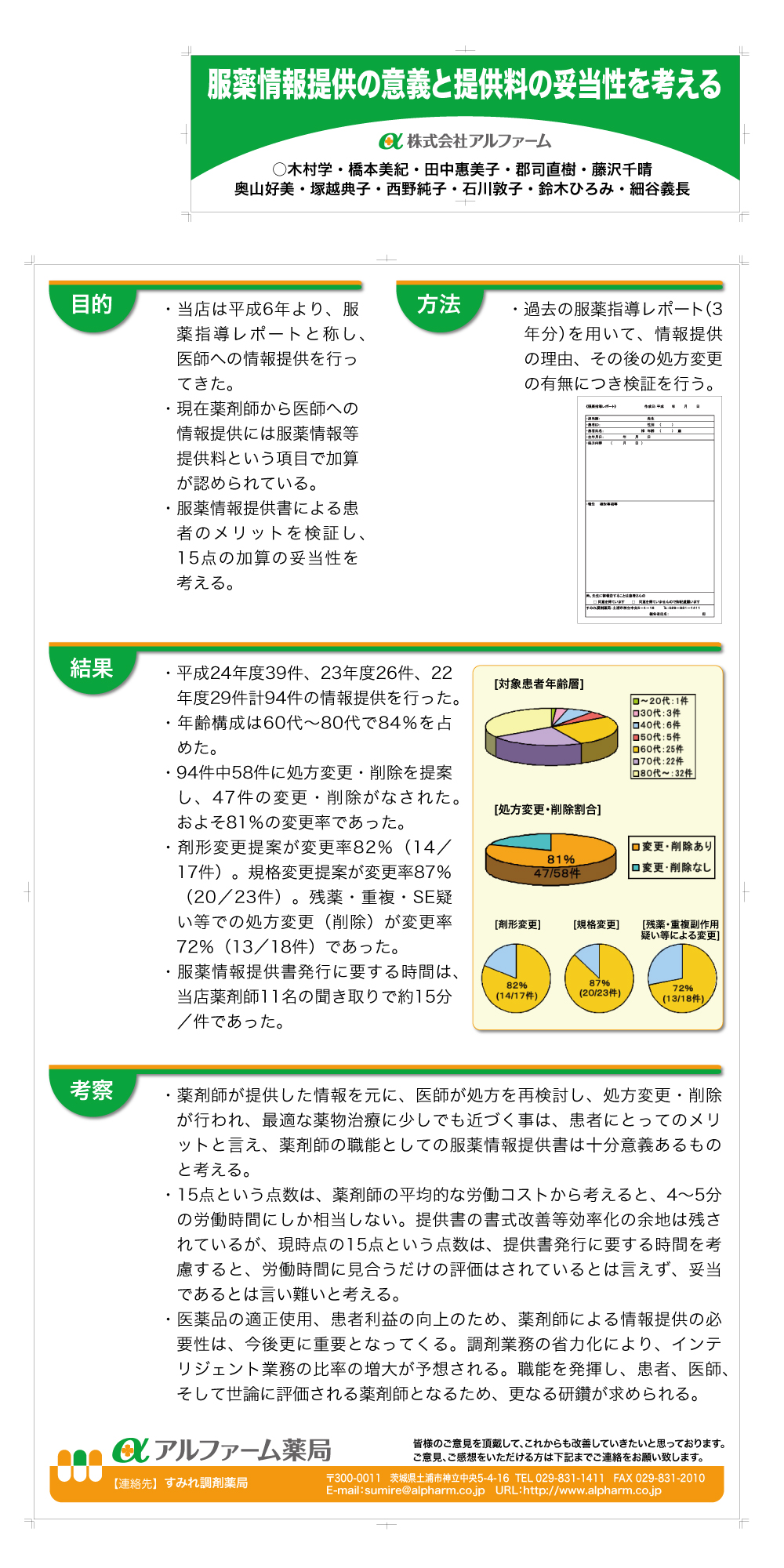 『服薬情報提供の意義と提供料の妥当性を考える』※ポスター発表