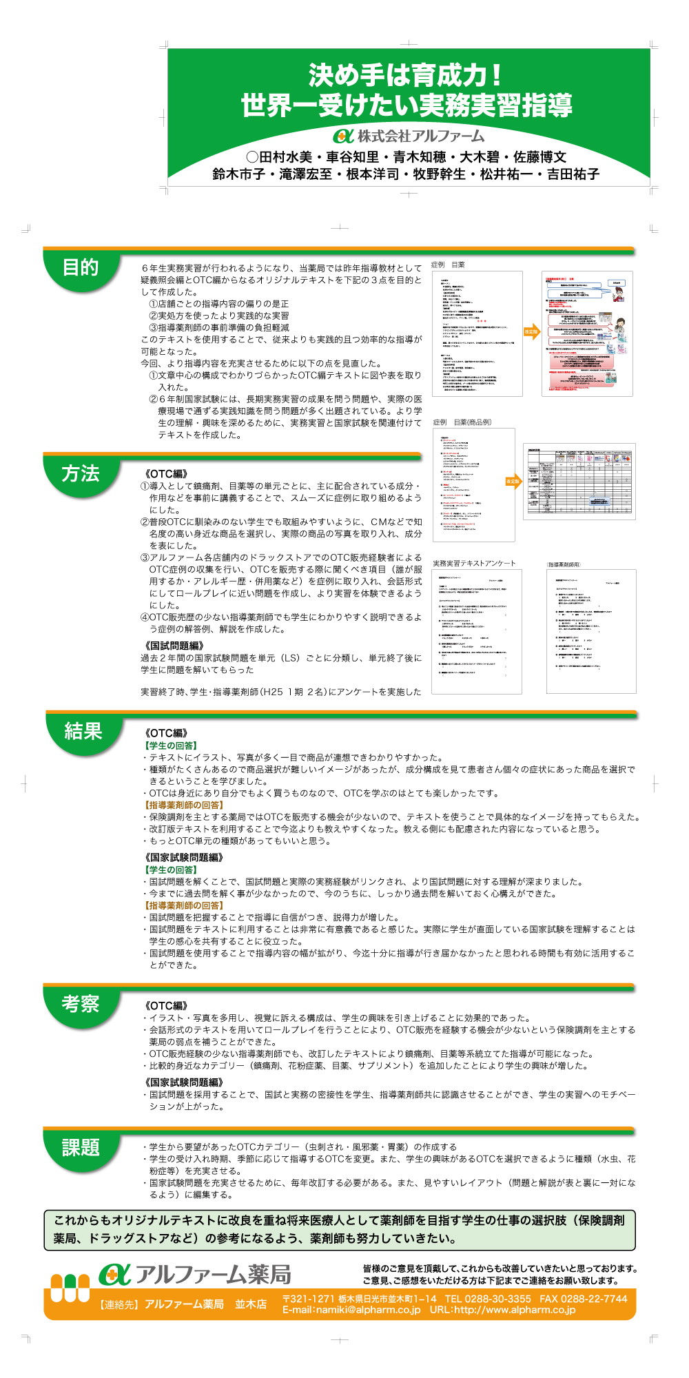 『決め手は育成力!世界一受けたい実務実習指導』※ポスター発表